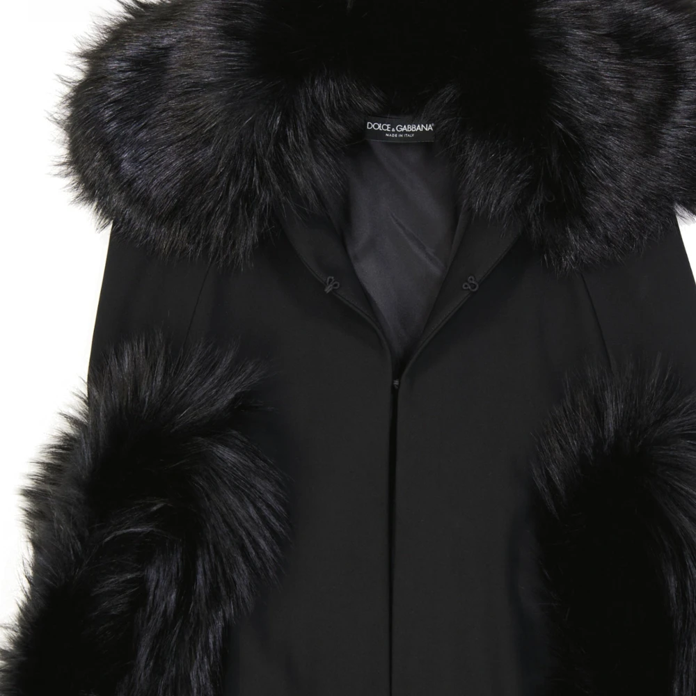 Verrijk je stijl met deze luxueuze Dolce & Gabbana Single-Breasted Coat. Vervaardigd in Itali met een zijden voering en een kraag van vosbont, is deze jas ontworpen voor een losse pasvorm en heeft korte mouwen met bontdetails. De drie haak- en oogsluiting aan de voorkant voegt een vleugje elegantie toe aan dit statementstuk. Productcode: F0Q64Tfurf 3_N0000.