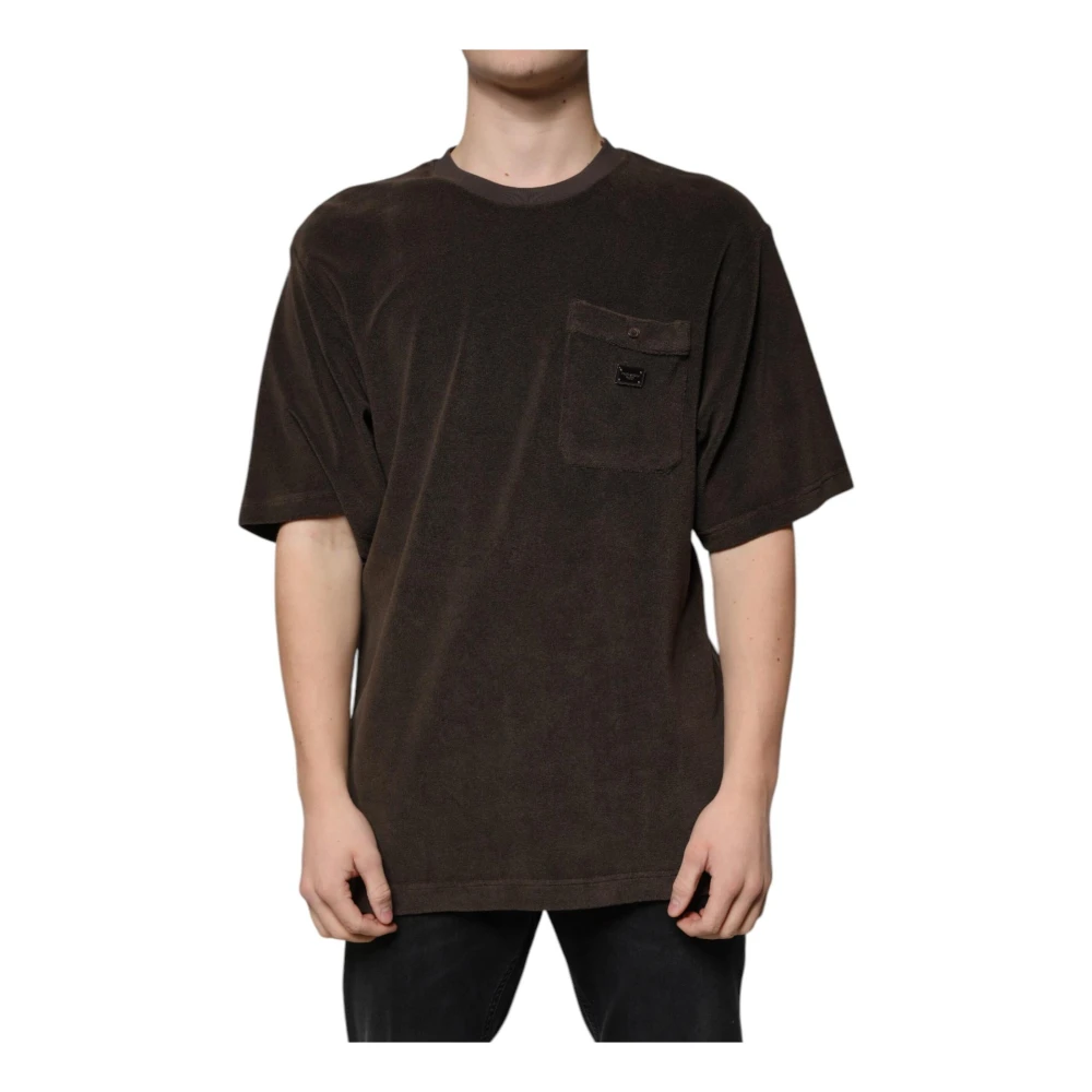 Upgrade je casual stijl met deze bruine Dolce & Gabbana t-shirt. Gemaakt in Itali van 100% katoen, heeft het een grafische print, logo details en een klassiek rond hals design met korte mouwen. Maat op label: It 48 | M.