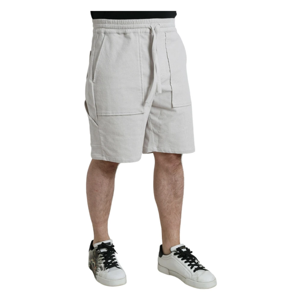 Upgrade je casual look met deze absoluut prachtige Dolce & Gabbana Bermuda shorts. Gemaakt van 100% katoenen ribfluweel, deze beige shorts hebben een elastische taille met een trekkoordsluiting voor een comfortabele pasvorm. Afgewerkt met logo details, deze shorts zijn gemaakt in Itali en zijn gloednieuw met labels