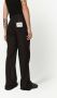Zwart, katoen, verborgen gulpsluiting, riemlussen, twee steekzijzakken, twee paspelzakken aan de achterkant, logopatch aan de achterkant, flared-fit en getailleerde fit.
