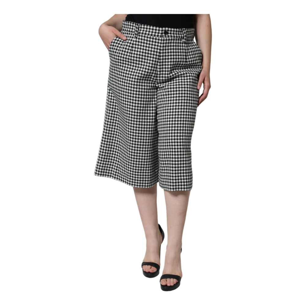 Upgrade je stijl met deze Dolce & Gabbana lange shorts voor vrouwen. Met een klassieke zwart-witte kleurstelling, middelhoge taille en een luxueuze mix van alpaca, katoen en nylon materialen. Gemaakt in Itali met hoog comfort in gedachten, zijn deze exclusieve design shorts voorzien van een ritssluiting en logo-details