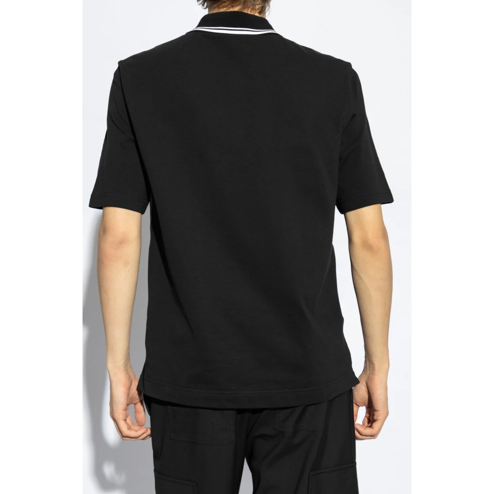 Dolce & Gabbana zwarte polo shirt voor heren met knoopsluiting aan de voorkant, borstzakje, streepdetail en korte mouwen.