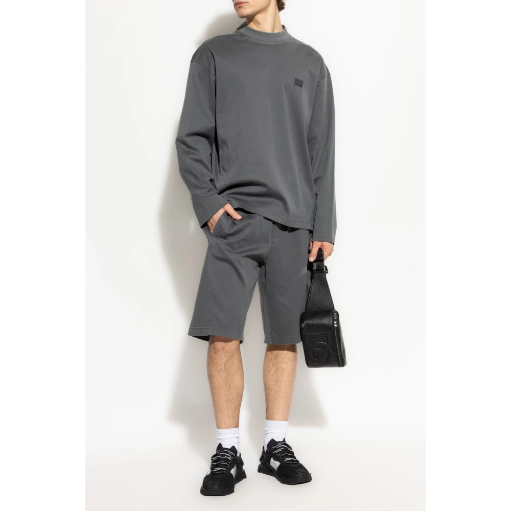 Dolce & Gabbana Katoenen shorts met logoplaatje Gray Heren