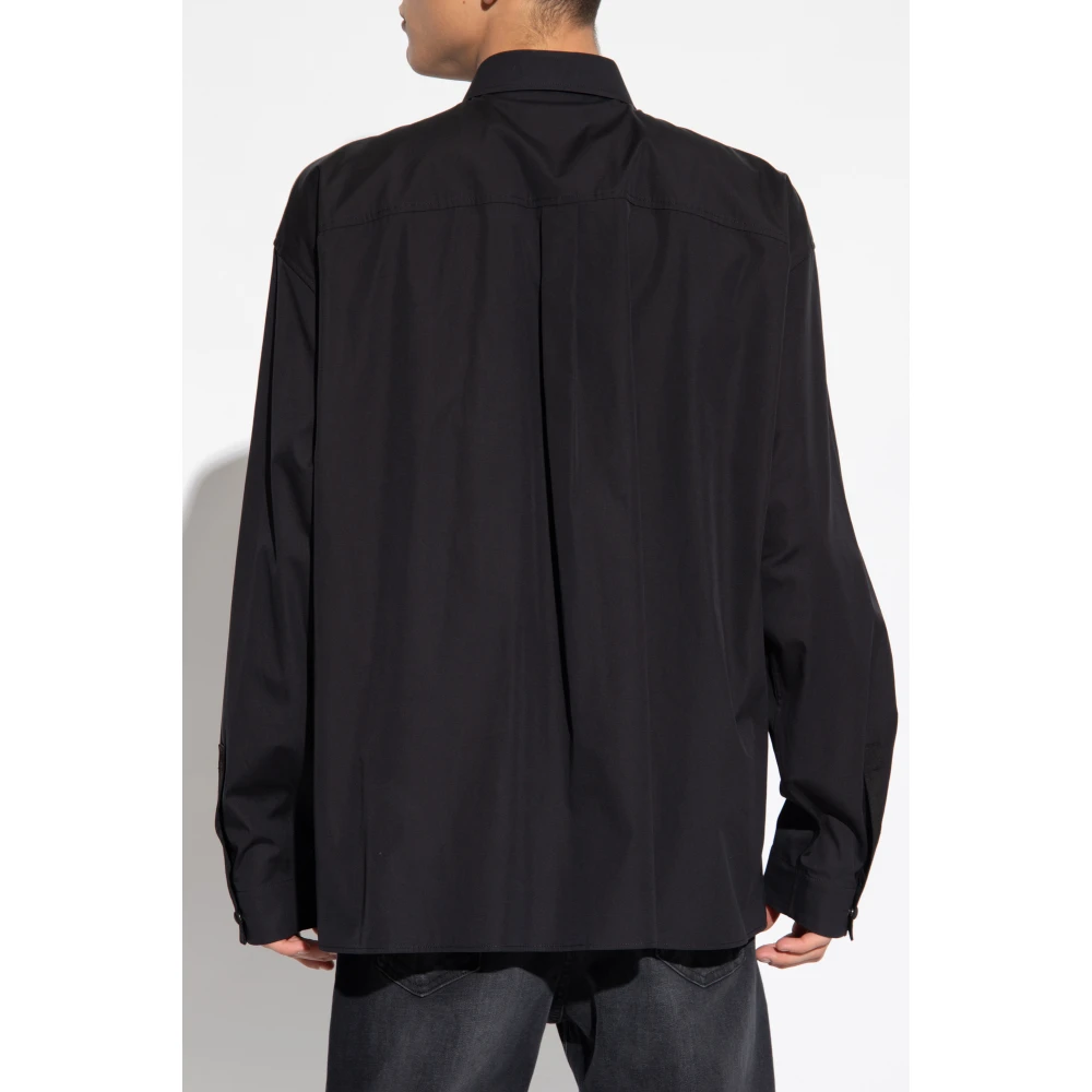 Zwarte shirt van Dolce & Gabbana. Gemaakt van katoen, deze stijl toont een wit logo patroon, knoopsluitingen, twee drukknopzakken en lange mouwen met drukknoopmanchetten. Afmetingen van het model: Lengte: 193 cm Borst: 95 cm Taille: 82 cm Heupen: 93 cm Het model draagt maat: L