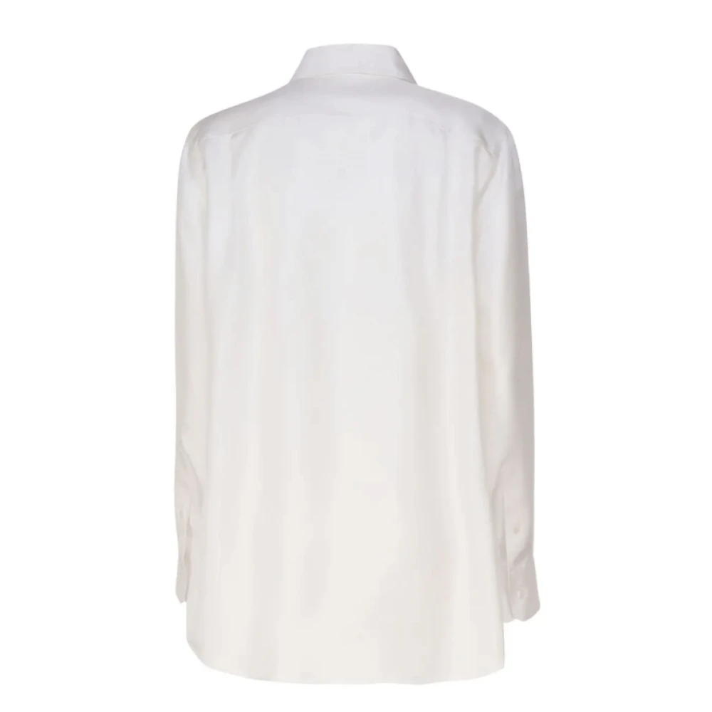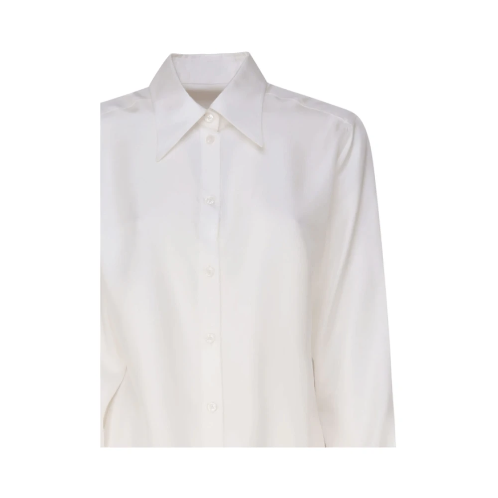 Upgrade je garderobe met deze luxueuze Dolce & Gabbana zijden blouse in het wit. Voorzien van een puntkraag, knoopsluiting aan de voorkant, lange mouwen met knoopmanchetten en een stijlvolle gebogen zoom.