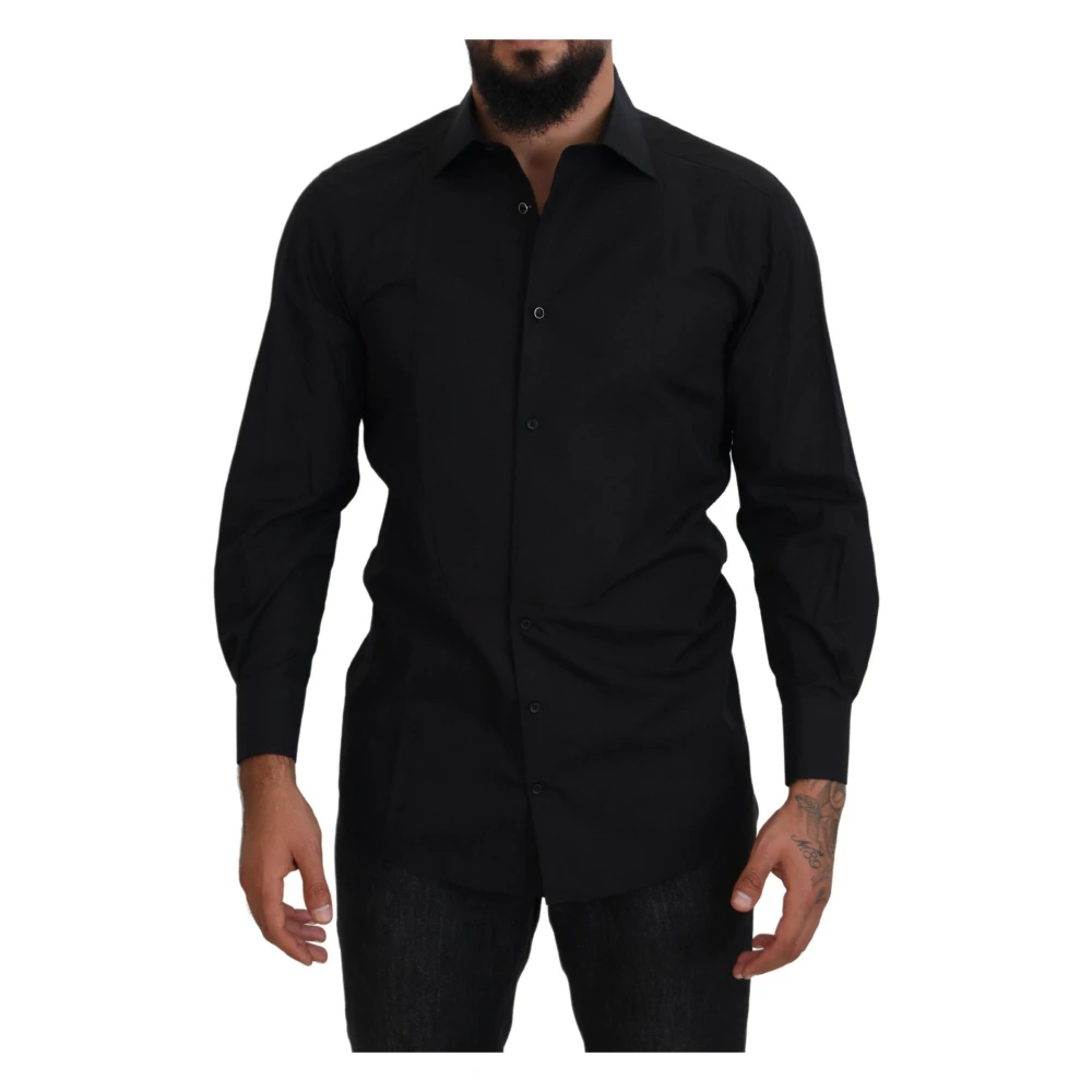 Upgrade je garderobe met deze absoluut prachtige Dolce & Gabbana formele shirt. Gemaakt van 100% katoen, heeft deze zwarte shirt een klassieke kraag, lange mouwen en een knoopsluiting aan de voorkant. De regular fit zorgt voor een comfortabele en stijlvolle uitstraling. Compleet met logo-details en gemaakt in Itali, wordt deze shirt gloednieuw geleverd met labels