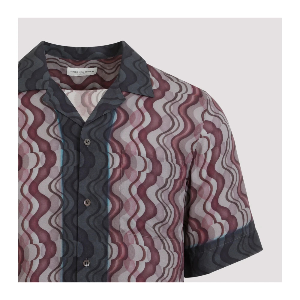 Upgrade je stijl met deze Dries Van Noten Purple Viscose Cartoline Shirt voor heren. Gemaakt van 100% viscose stof, met een opvallende geometrische print, bowling kraag, korte mouwen, knoopsluiting aan de voorkant, borstzak en een regular fit. Perfect om een vleugje verfijning aan je garderobe toe te voegen.