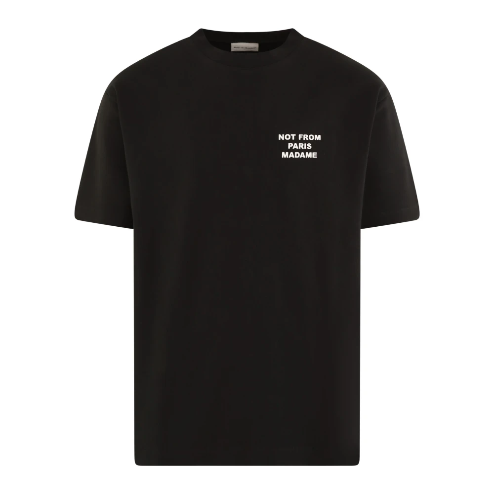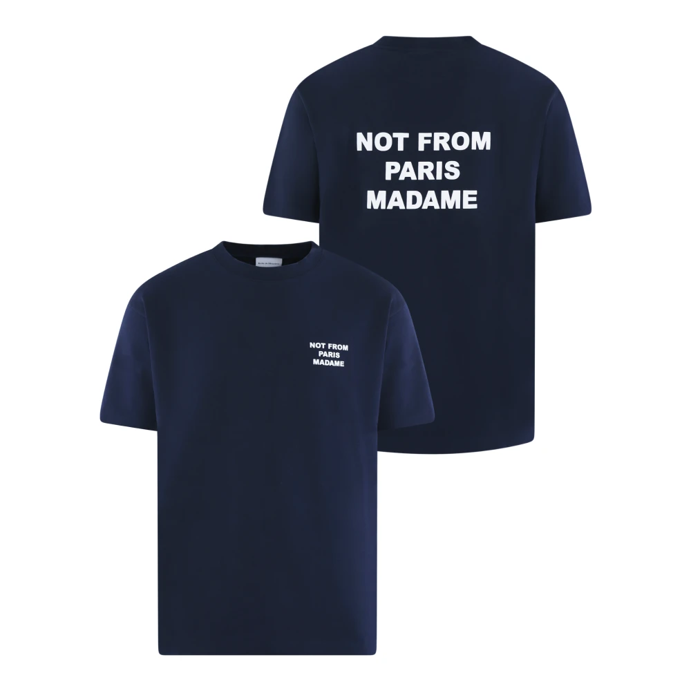 Het Slogan T-shirt van Drle de Monsieur is een klassiek, super cool t-shirt met korte mouwen en een ronde hals. Gemaakt van comfortabel, rekbaar katoenen stof, heeft dit t-shirt een normale pasvorm. De eenvoudige, tijdloze uitstraling maakt het geschikt voor de meeste gelegenheden. Het t-shirt is versierd met de iconische slogan Not From Paris Madame