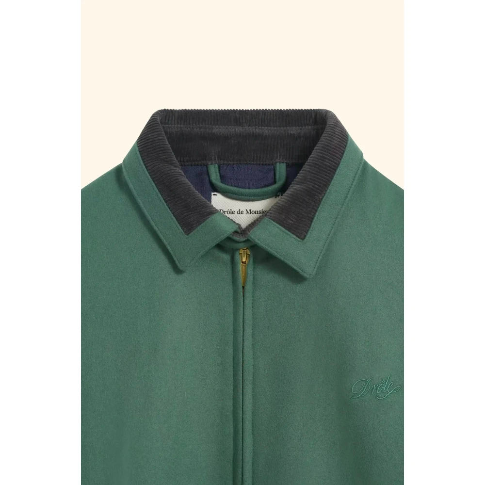 Upgrade je stijl met deze watergroene wollen jas van Drole de Monsieur. De jas heeft een toon-op-toon 'Drle' knoop en een contrast corduroy inzet op de kraag, gevoerd met viscose voor comfort. Daarnaast heeft de jas een overhemdkraag met een gegraveerde drukknoop, twee raglanzakken met gegraveerde drukknopen, een ritssluiting en elastische manchetten en zoom. Gemaakt in Portugal.