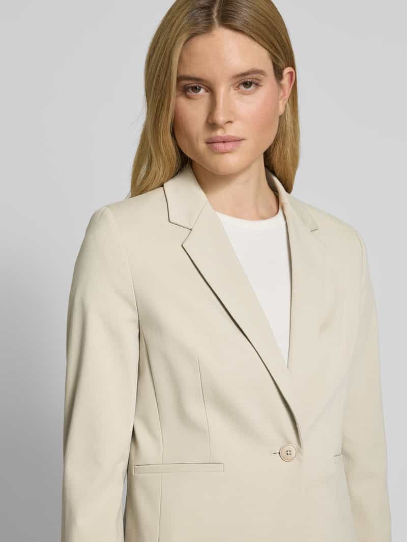 Blazer voor dames van DRYKORN. Katoenmix met stretchgehalte. Recht model. Model 'SELSEY'. Reverskraag. Knoopsluiting. Strookzakken. Ruglengte bij maat 36: 60 cm. Borstomvang bij maat 36: 42 cm. Mouwlengte bij maat 36: 62 cm
