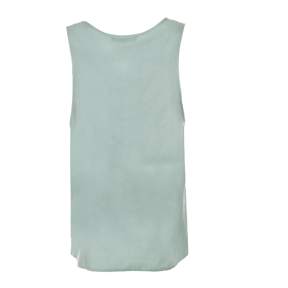 Upgrade je garderobe met deze stijlvolle Drykorn mouwloze top voor vrouwen. Met een diepe ronde halslijn, zijdelingse splitten aan de zoom en een relaxte pasvorm, is deze top gemaakt van een vloeiende, zachte en licht glanzende stof. Perfect voor elke gelegenheid met zijn reguliere lengte en rechte zoom.