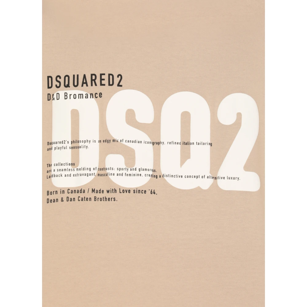 Upgrade je casual look met dit beige Dsquared 2 katoenen t-shirt voor mannen. Met ronde hals, korte mouwen en een contrasterend kleurlogo aan de voorkant. Model is 190 cm lang en draagt maat L.