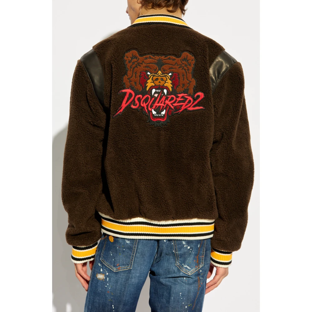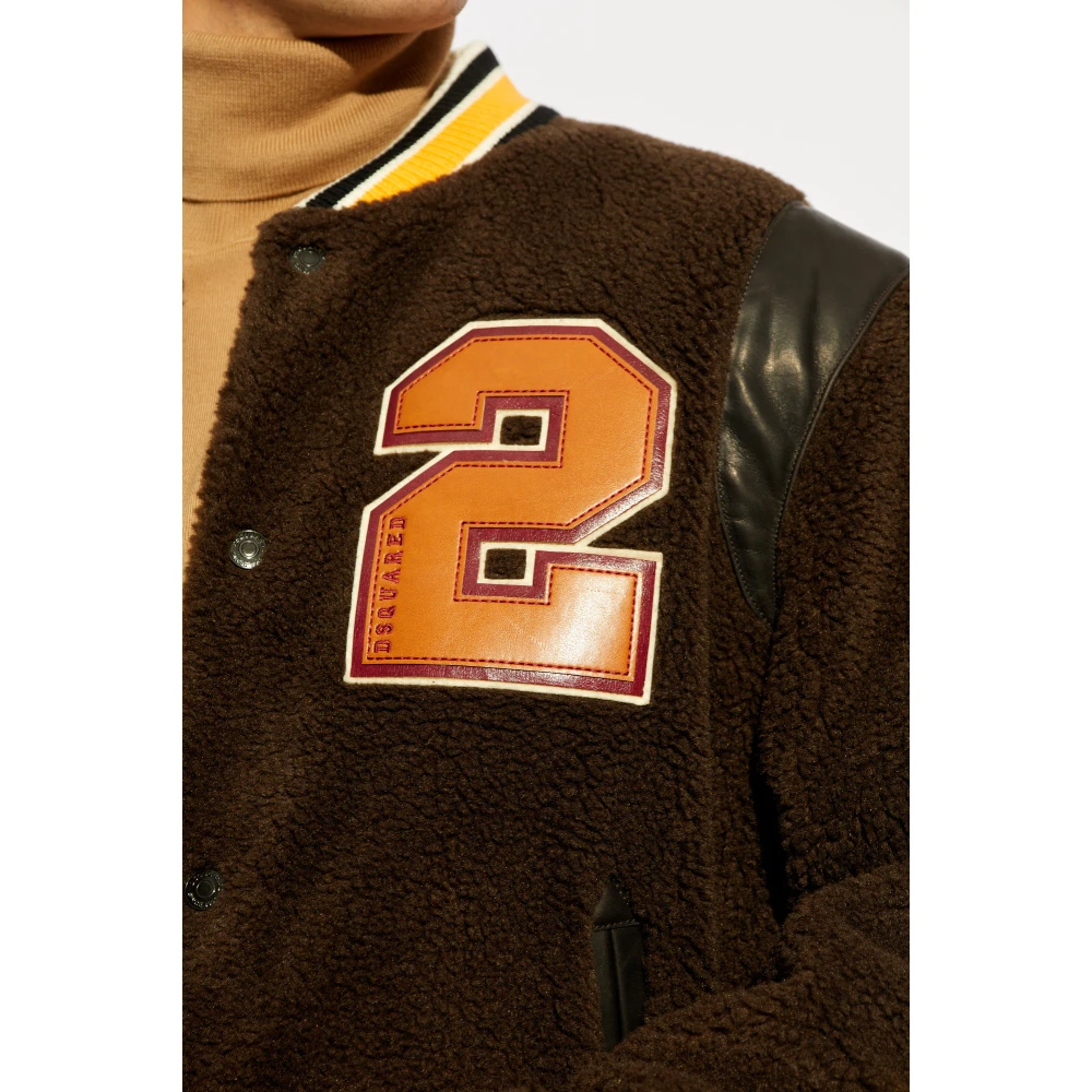 Ontdek ongevenaarde elegantie en sportieve nonchalance met de exclusieve Bomber Jacket van het gerenommeerde merk Dsquared 2. Vervaardigd van de hoogste kwaliteit 100% Polyamide, deze jas betovert met zijn zachtheid en pluizigheid, die doet denken aan de meest delicate bont. De overheersende bruine tint wordt perfect gecompenseerd door contrasterende accenten in geel en wit, waardoor de jas een onderscheidend karakter krijgt. Trouw aan de collegiale stijl, harmoniren de gele en witte strepen op de manchet van de mouwen en onderaan de jas met de sportieve geest van dit kledingstuk. Een groot, opgestikt nummer