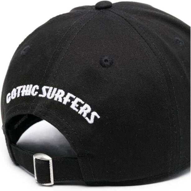 Zwarte baseballpet van Dsquared 2. Gemaakt van katoen, dit item heeft een geborduurd wit en zwart logo aan de voorkant en een verstelbare riem met een zilverkleurige gesp aan de achterkant