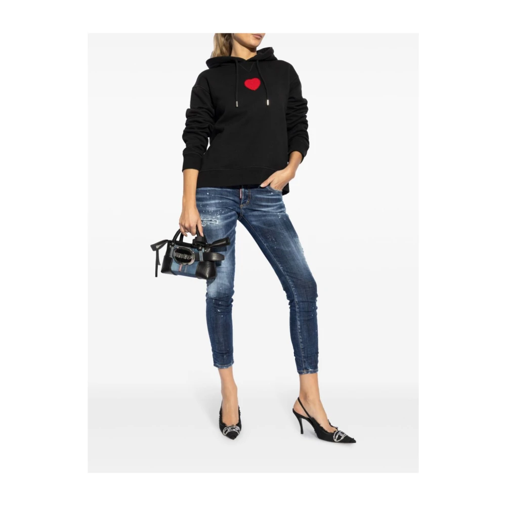 Blijf stijlvol en comfortabel in deze zwarte katoenen hoodie van Dsquared 2. Gemaakt van zacht katoen, met een voorpatch met hart, trekkoord capuchon, verlaagde schouders en rechte zoom. Perfect voor de modebewuste vrouw