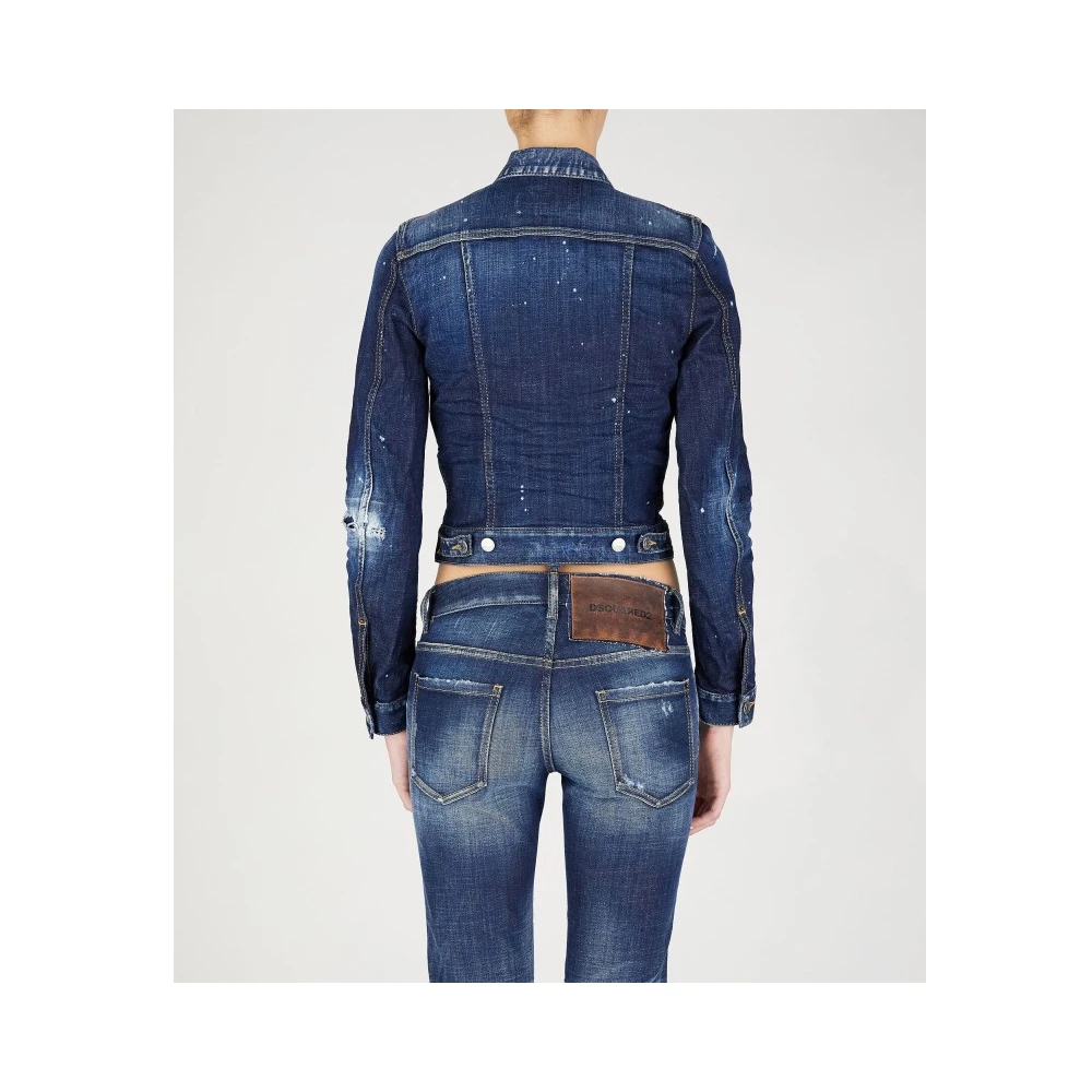 Upgrade je stijl met deze Dsquared 2 denim jack voor vrouwen. Met een korte lengte, stretch denim stof met een versleten, gescheurde en bevlekte effect, twee opgestikte zakken met klep, knoopsluiting en een slim fit. Perfect voor een trendy en edgy look. Stijlcode: S75Am 1093 S30342.