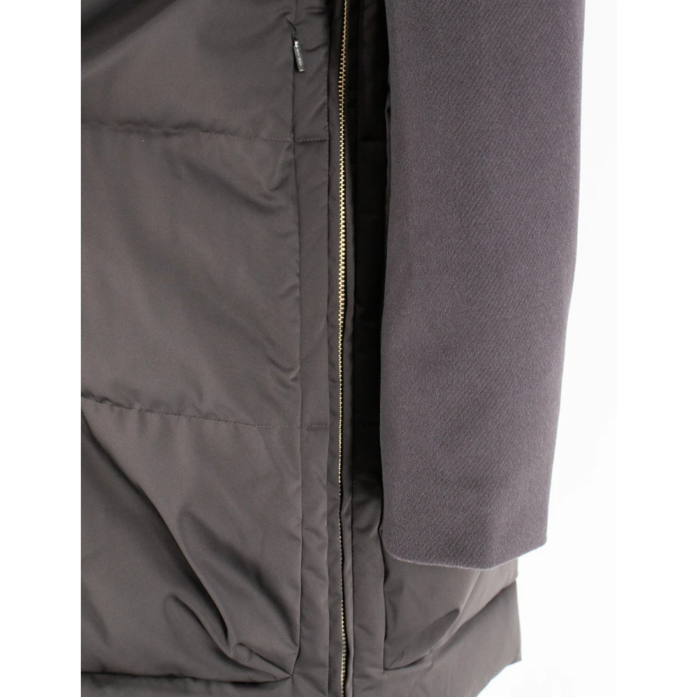 Blijf warm en stijlvol met deze Duno bi-materiaal donsjack voor vrouwen. Gemaakt van een mix van technische wol en stof, met een grote capuchon, zijritsen, voor sluiting en ritszakken. De binnenmanchet in technisch breisel voegt een moderne touch toe. Stofdetails: 42% wol, 40% viscose, 18% polyester.
