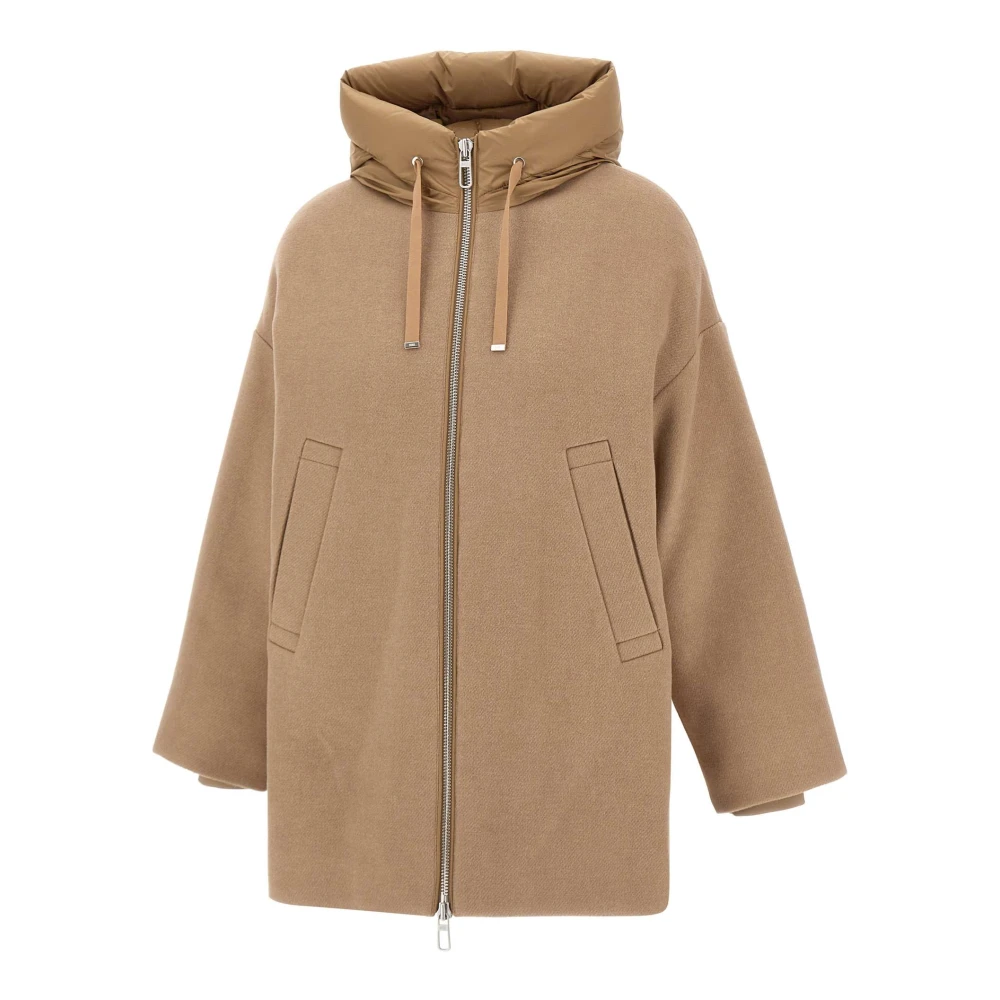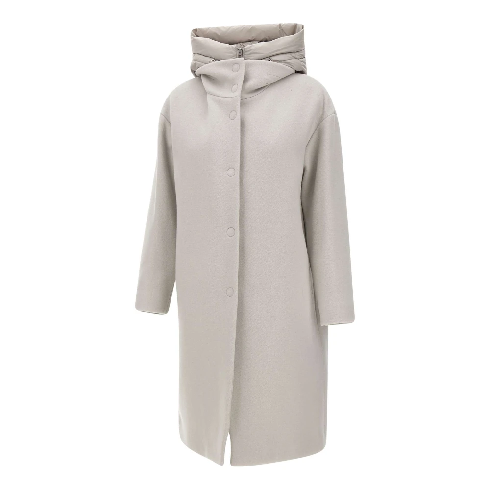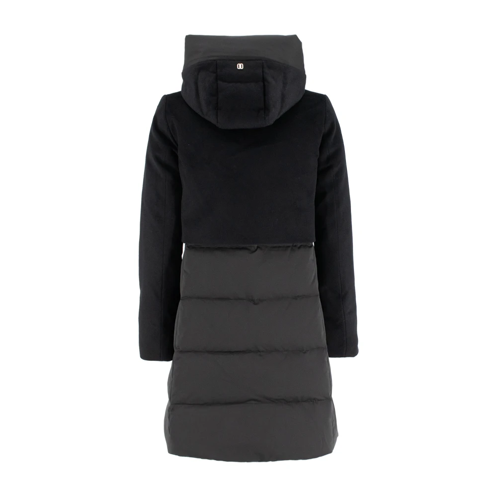 Blijf warm en stijlvol met deze Duno bi-materiaal donsjack voor vrouwen. Gemaakt van een mix van wol en technische stof, met een dubbele ritssluiting aan de voorkant, verborgen zijzakken met onzichtbare ritsen en een gevoerde capuchon in superlichte technische stof