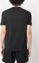 Zwart, logoprint op de borst, ronde hals, korte mouwen en rechte zoom.