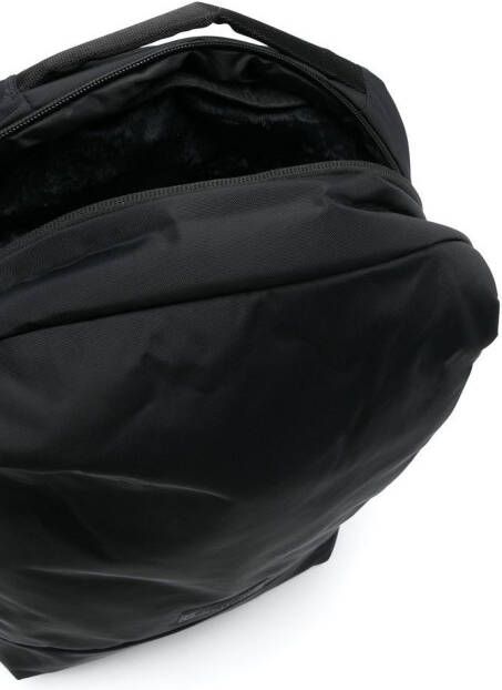 Zwart, logopatches aan de voorkant, ritssluiting aan de bovenzijde en verstelbare schouderbandjes.