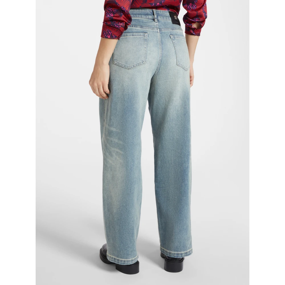 Jeans met wijde pijpen van 12 oz indigo stretchdenim met lichte stone wash; Het model met wijde pijpen zorgt voor een vintage look; Bijzonder glamoureus is de naar binnen gekeerde zijnaad.
