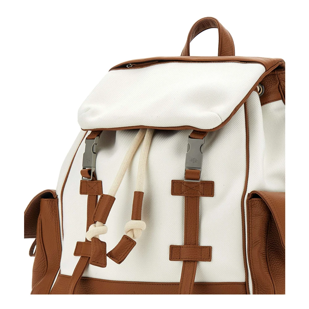 Upgrade je stijl met de Eleventy heren 'Rucksack' rugzak in wit en tabak. Gemaakt van katoenen canvas met hertenprint kalfsleren handvatten en details, deze rugzak heeft externe multifunctionele zakken, interne compartimenten, sluiting met zilveren logo-haken, verstelbaar trekkoord, gewatteerde schouderbanden, bovenhandvat en interne ritszak. Gemaakt in Itali. Afmetingen: hoogte 38 cm, breedte 40 cm, diepte 15 cm.