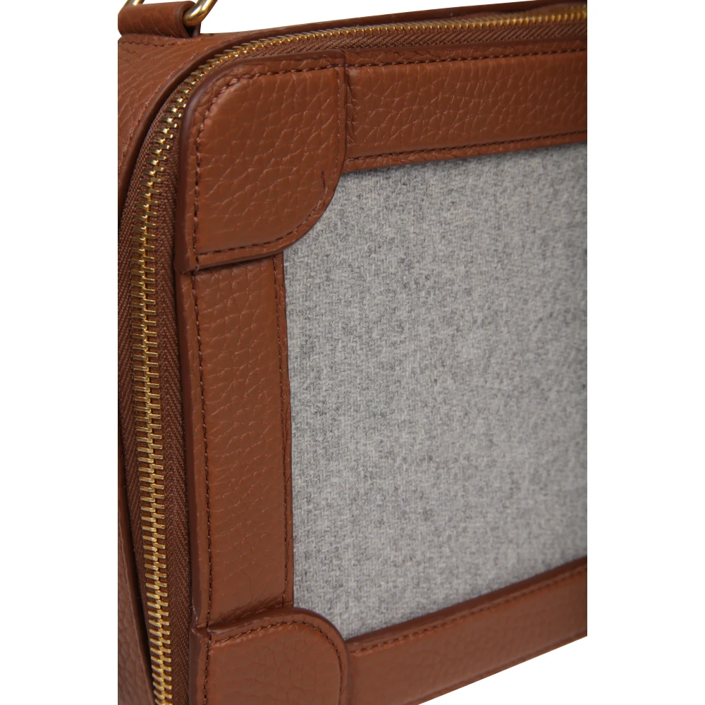 Artikelcode: Hh 9438 - 000G653 Leren EN Flanel TAS De schouderband Belgrave wordt vernieuwd, met designelementen die typerend zijn voor de wereld van Eleventy. De praktische en compacte tas is gemaakt van kastanjebruin leer en zachte flanel, afgewerkt met geverfde randen. Het merk Mulberry x Eleventy maakt de look compleet. Samenstelling 100% Leer Afmetingen