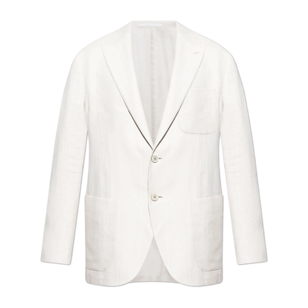 Eleventy Wol Zijde Linnen Single-Breasted Pak Blue Heren