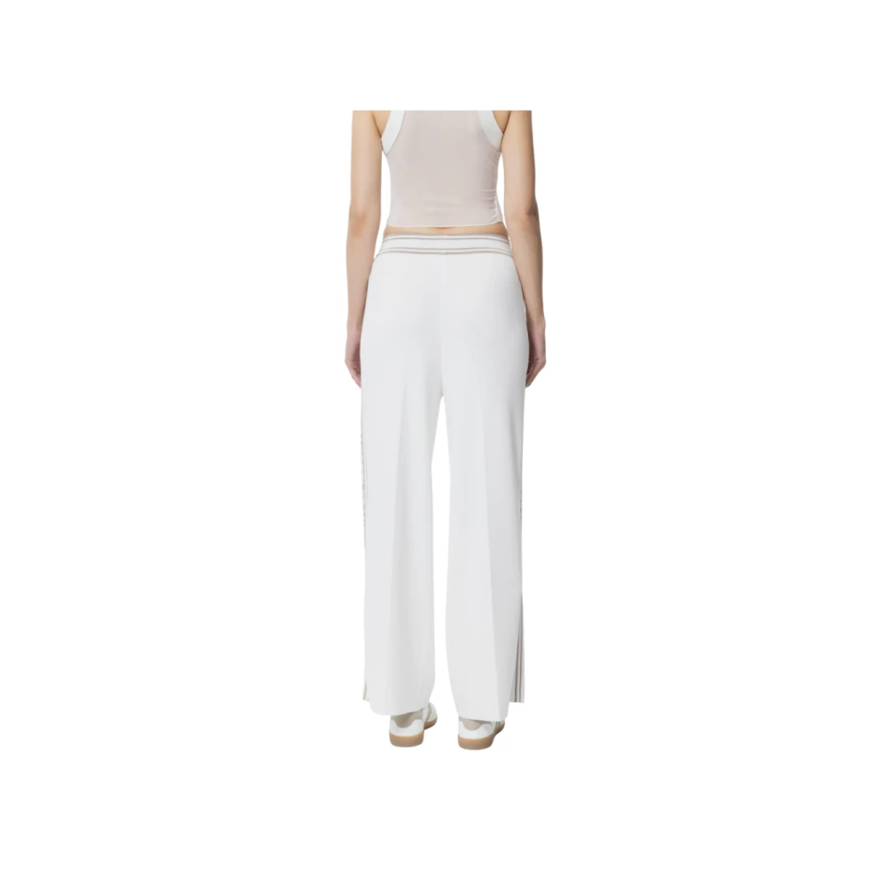 Upgrade je stijl met deze wijde broek van Elisabetta Franchi, gepersonaliseerd met contrasterende banden met het logo op de tailleband en zijkanten voor een gedurfde silhouet. De broek heeft een wijde pijp en regular fit. Details: -Kp 65S51E2 -Contrasterend logo detail -Binnenbeenlengte 75 cm voor maat 40 IT -Model is 177 cm lang en draagt maat 40 IT. Samenstelling artikel 82% Viscose 18% Polyamide. Regular fit.