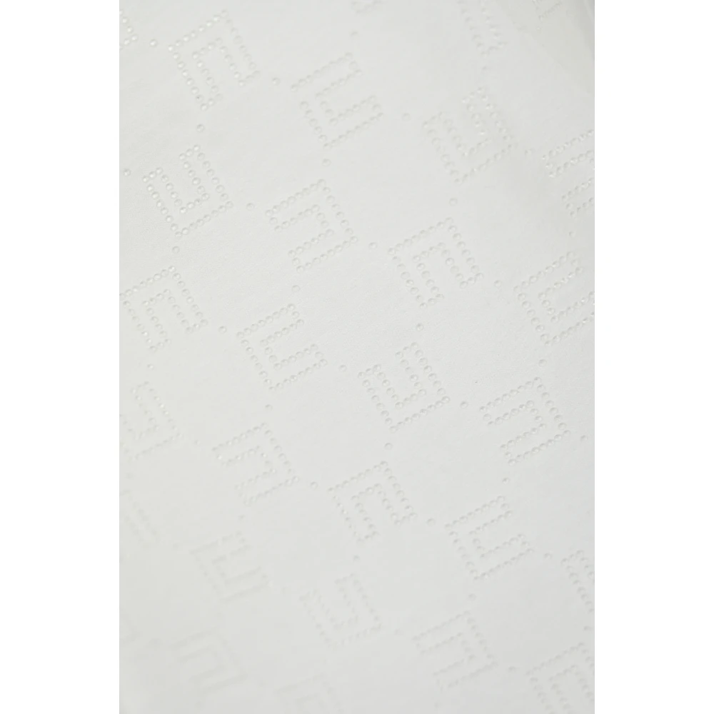 Verrijk je casual garderobe met deze dames T-shirt van Elisabetta Franchi. Gemaakt van zacht katoenen jersey, heeft het een klassieke ronde hals en korte mouwen voor een comfortabele pasvorm. Het allover logo is versierd met transparante strass-steentjes, wat een vleugje glamour aan je look toevoegt. Met een rechte zoom en aansluitende pasvorm is deze T-shirt perfect voor dagelijks gebruik. Samenstelling: 100% katoen.