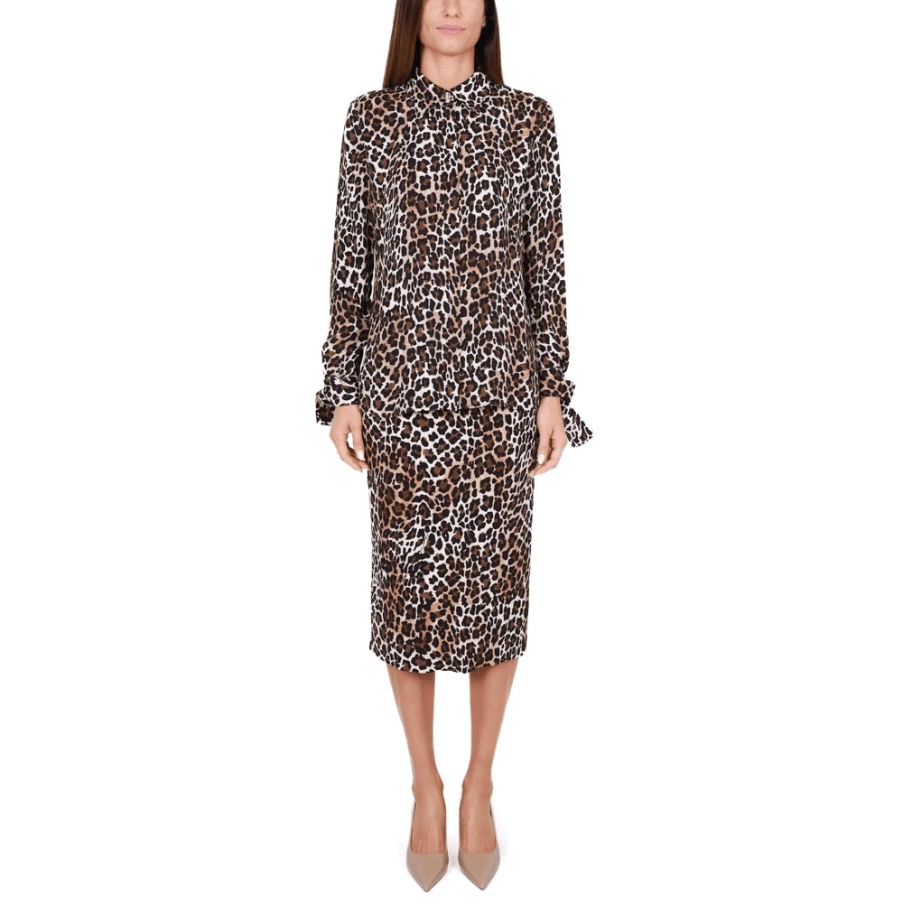 Elisabetta Franchi blouse met lange mouwen van georgette met dierenprint voor vrouwen in het zwart. Regular fit, gemaakt van 100% viscose stof. Model is 1, 80 cm lang en draagt maat 40.