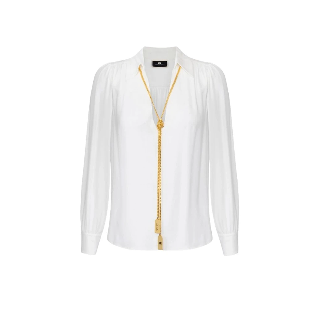 Upgrade je garderobe met deze dubbele georgette blouse van Elisabetta Franchi. Met lange mouwen, een V-hals en geplooide schouders, is deze blouse voorzien van een verwijderbare ketting met logohangers