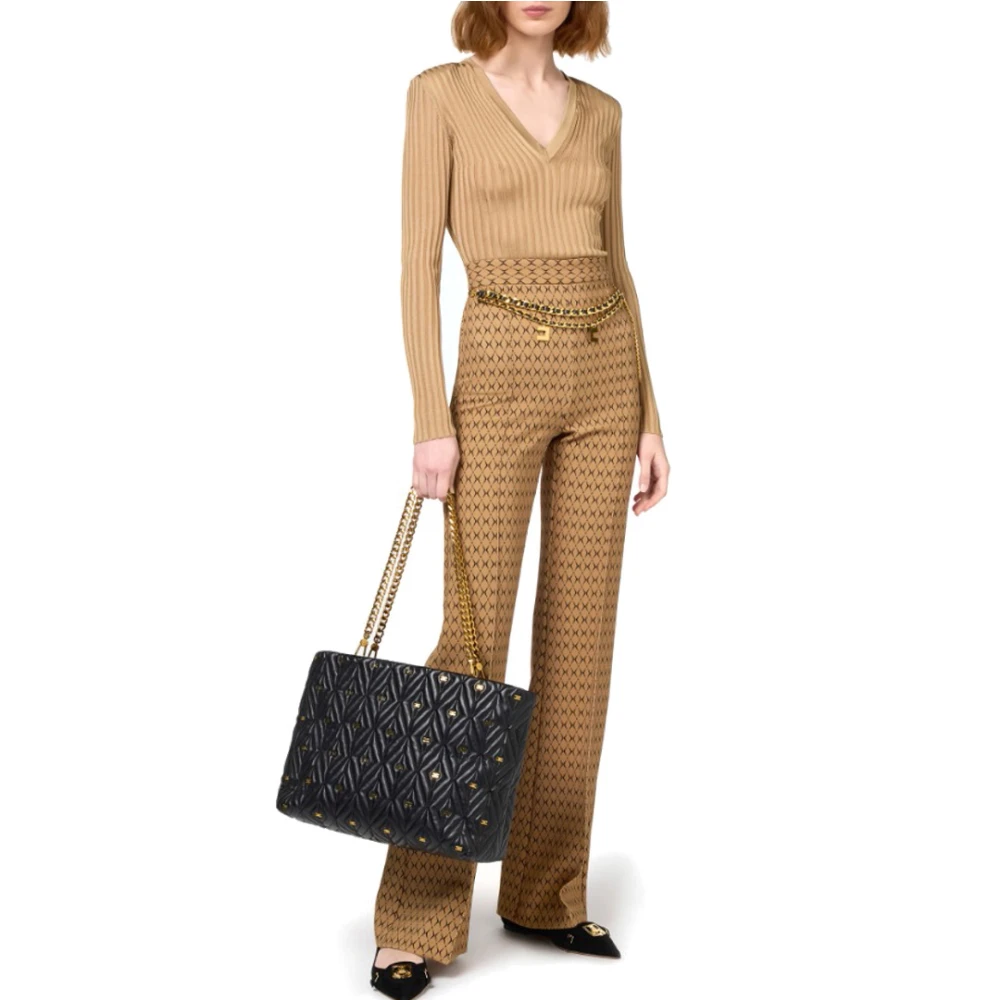 Upgrade je stijl met deze Elisabetta Franchi palazzo broek in ruitjesprint dubbele stretch crpe. Voorzien van een ingetogen kettingriem, gouden metalen logohangers, onzichtbare zijrits en slim fit. Perfect voor de modebewuste vrouw.