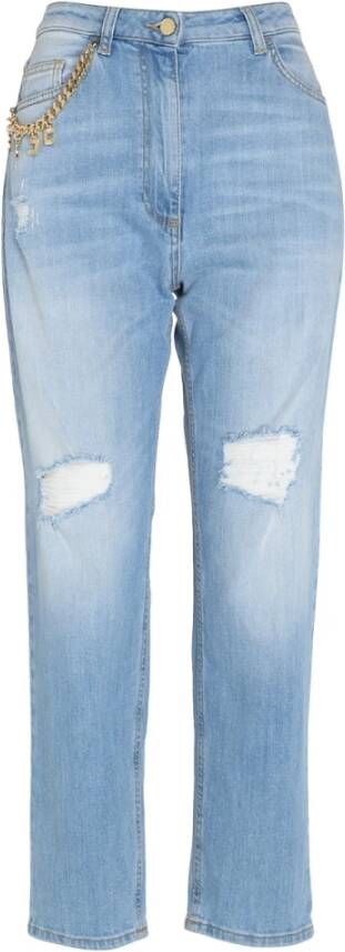 Elisabetta Franchi Blauwe Straight Leg Jeans met Distressed Details Blauw Dames