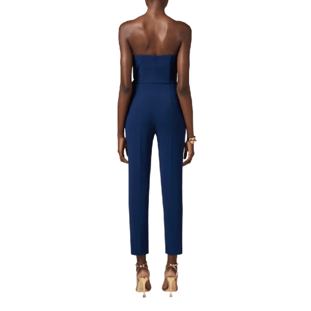 Elegante jumpsuit in vloeiende crpe met een grote strik ondertekend door Elisabetta Franchi. Deze jumpsuit heeft een duchesse band die het effect van een grote strik creert, verfraaid met een juweeldecoratie in gouden metaal op de knoop. Code: Tu 03951E2. Gevoerd met satijn; Gouden metalen detail met logo; Ritssluiting. Samenstelling artikel: 95% polyester en 05% elastaan. Nauwsluitende pasvorm.