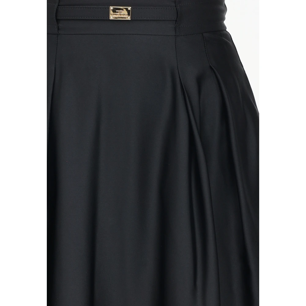 Elegante zwarte midi-rok voor vrouwen van Elisabetta Franchi, gemaakt van viscose satijn met een regular fit. Aandacht voor detail: de riem met een gouden metalen logoplaat accentueert de taille en verbetert de volheid van het kledingstuk. Het model draagt maat 40 en is 170 cm lang. Aanbevolen wassen en strijken op gemiddelde temperatuur. Lente-zomerseizoen. Elegante zwarte dames regular fit midi-rok voor lente-zomerseizoen Go 09851E2110.