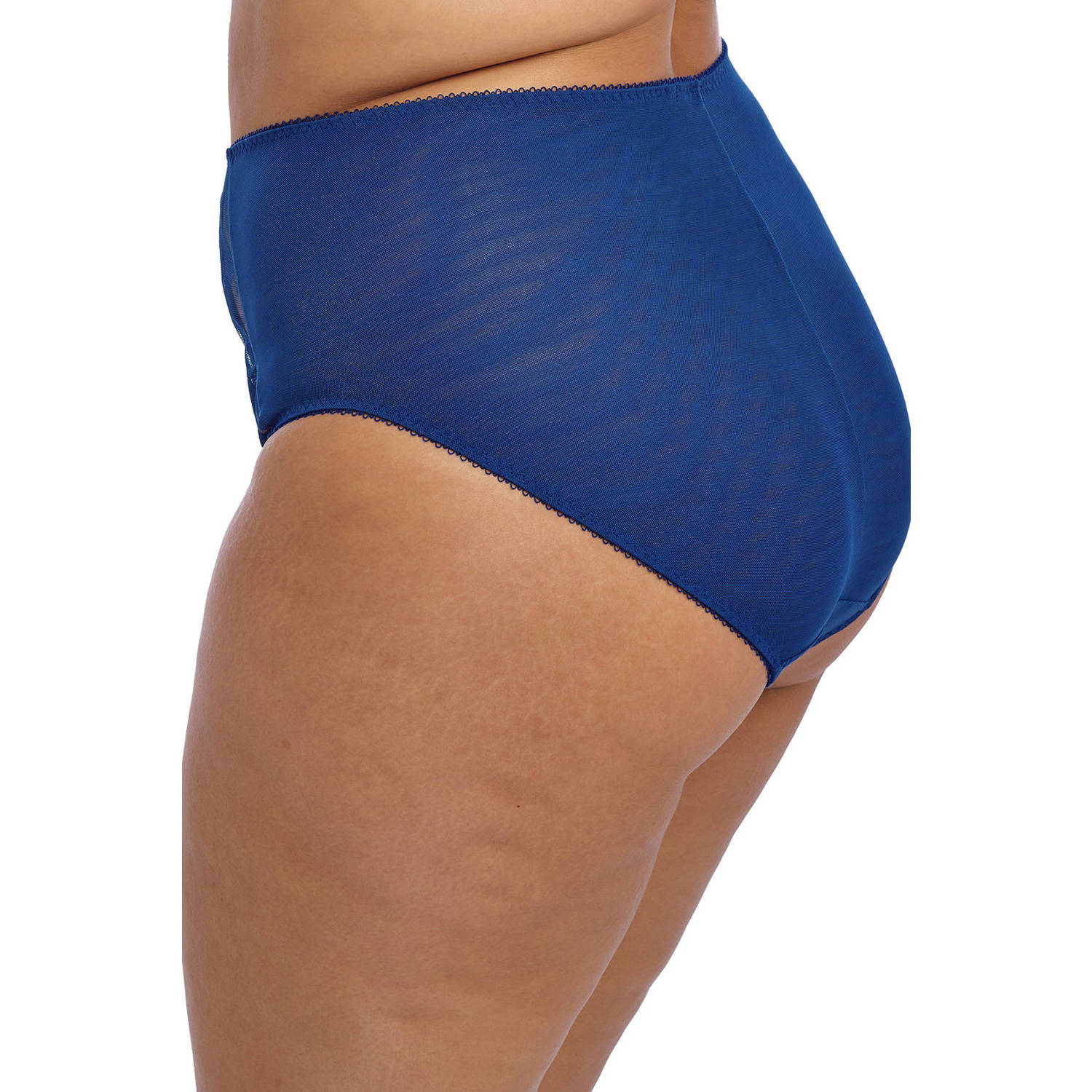 Dames slip Cate Allure van Elomi. Met dubbele laag stretch mesh voorkant, zijkanten en achterkant voor bescheidenheid. Het kant op de zijkant van de slip zit gevangen tussen voering en een doorzichtige bovenstof, dit voor een gladde afwerking en een subtiel eigentijdse uitstraling. Strikdetail aan de voorkant.