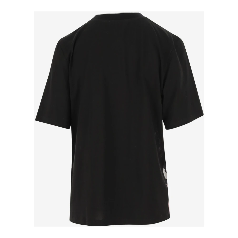 Emilio Pucci T-shirt voor dames gemaakt in Itali van 100% katoen. Deze stijlvolle top heeft een ronde hals, korte mouwen en een marmerpatroon overal. Met een losse pasvorm en rechte zoom biedt het een comfortabele en chique uitstraling. Model draagt maat S.
