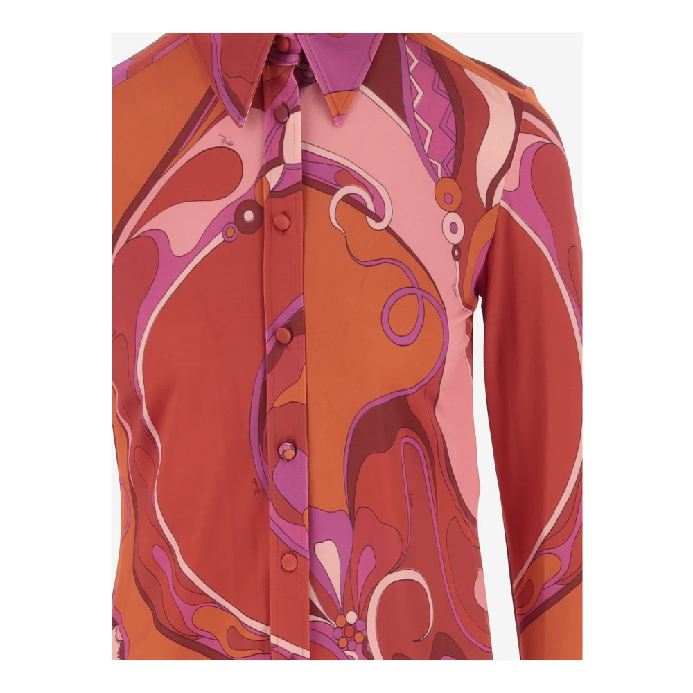 Upgrade je garderobe met deze Emilio Pucci blouse, gemaakt van satijnen jersey met een orchideen motief. Gemaakt in Itali, het heeft een puntkraag, bedekte knopen en een slanke pasvorm. Perfect voor de moderne vrouw. Samenstelling: 95% viscose, 5% elastaan.