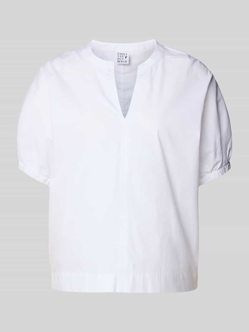 Blouseshirt voor dames van Emily Van den Bergh. Mix van katoen en elastaan. Los model. V-hals. Elastische mouwboorden. Ruglengte bij maat 36: 60 cm. Mouwlengte bij maat 36: 27 cm