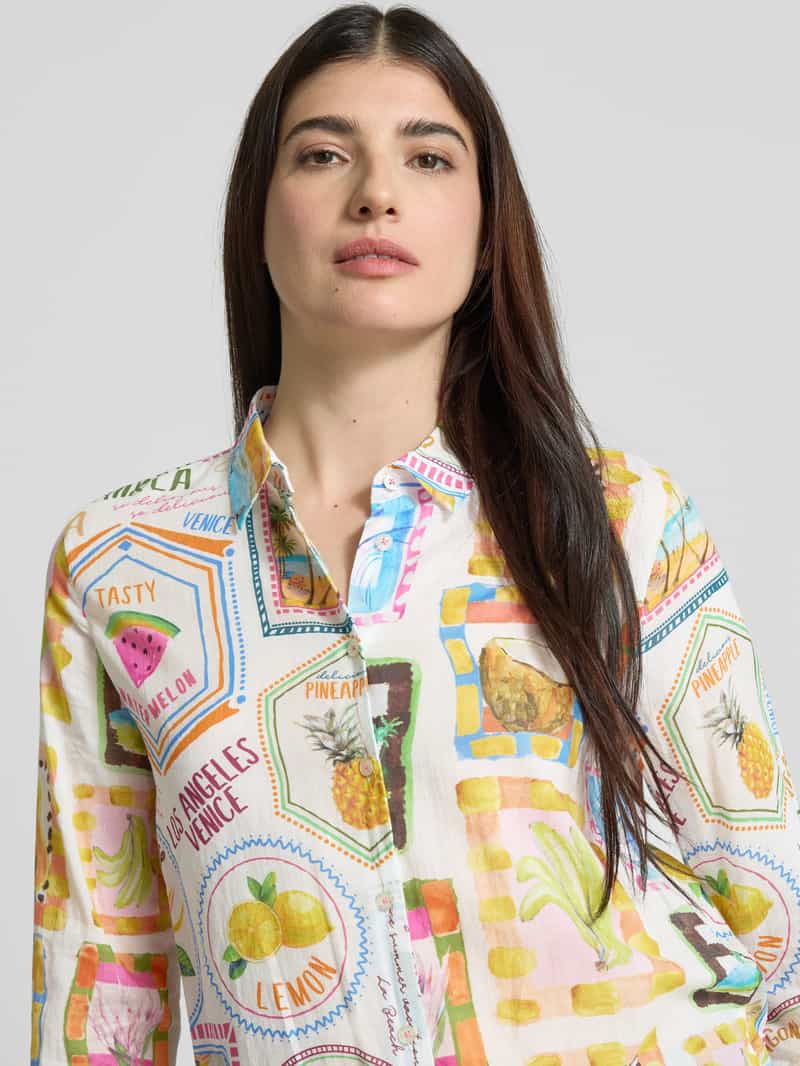 Overhemdblouse voor dames van Emily Van den Bergh. Puur katoen. Regular fit. Overhemdkraag. Doorknoopsluiting. Manchetten. Ruglengte bij maat 36: 65 cm. Mouwlengte bij maat 36: 61 cm