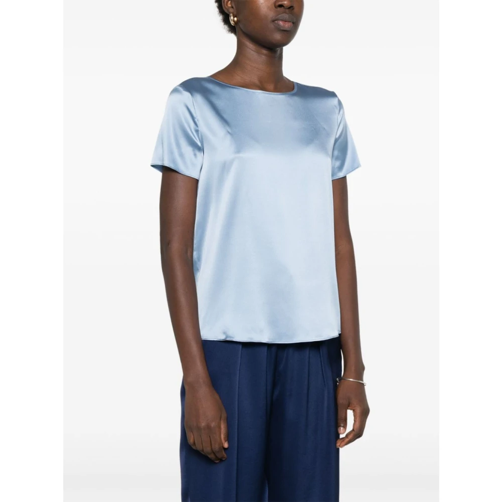 Upgrade je garderobe met deze hemelsblauwe blouse van Emporio Armani. Gemaakt van stretch-zijde satijn, heeft het een knoopsluiting aan de achterkant, ronde hals, korte mouwen en een rechte zoom. Dit kledingstuk valt normaal qua maat. Model is 1, 75 m / 5ft 8in en draagt maat 40 (It).