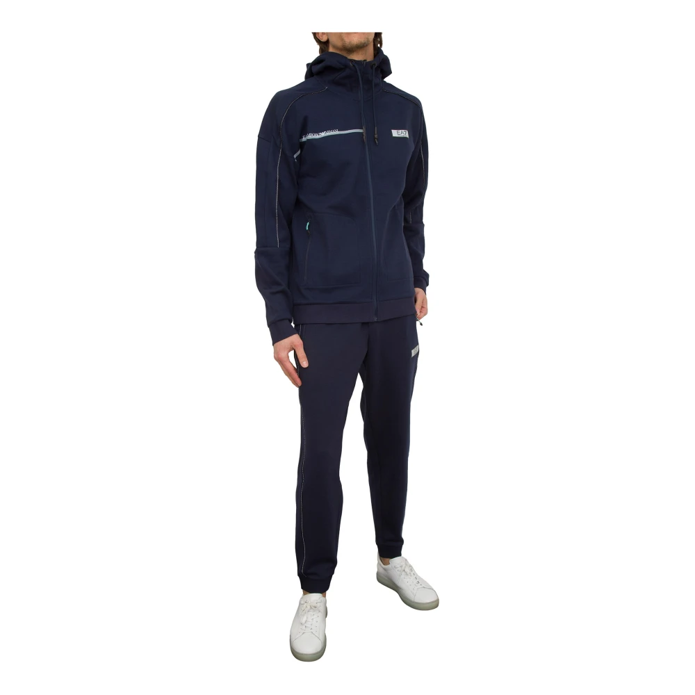 Emporio Armani EA7 heren blauwe zip-through sweatshirt gemaakt van 60% polyester en 40% katoen.