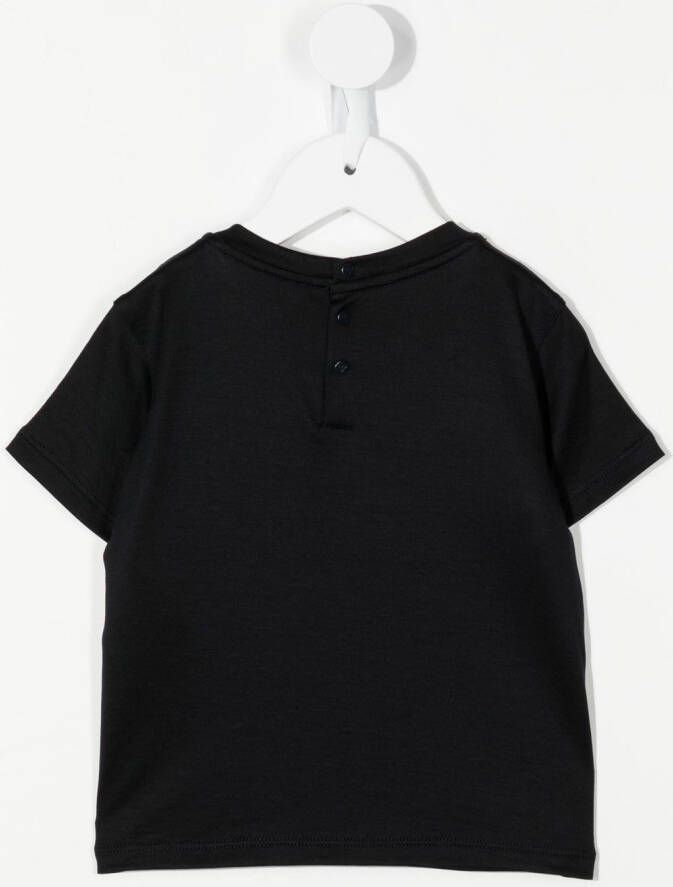 Marineblauw, katoen-lyocellmix, jersey gebreid, logoprint op de voorkant, ronde hals, korte mouwen , rechte zoom en drukknoopsluiting aan de achterkant. .