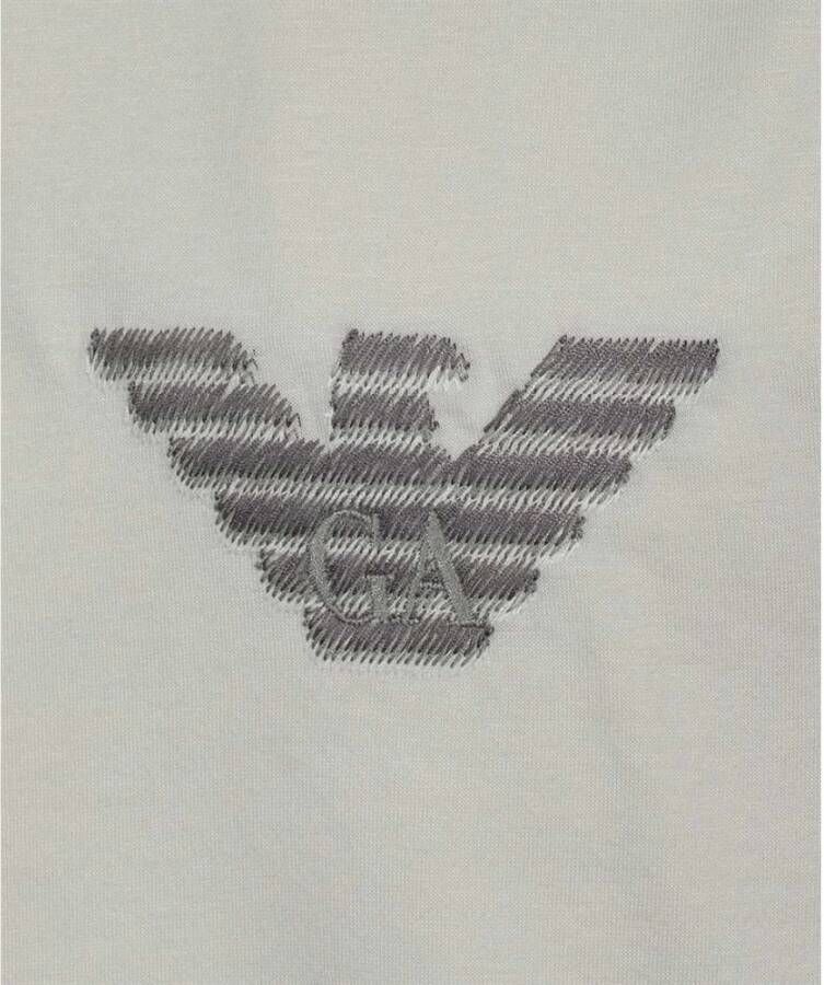 Upgrade je casual garderobe met deze Emporio Armani T-shirt met korte mouwen in lichtgrijs. Met het iconische adelaarslogo geborduurd op de voorkant, is deze t-shirt een stijlvolle keuze voor mannen. Gemaakt van 100% katoen, biedt het zowel comfort als duurzaamheid. Shop nu en voeg een vleugje luxe toe aan je alledaagse look