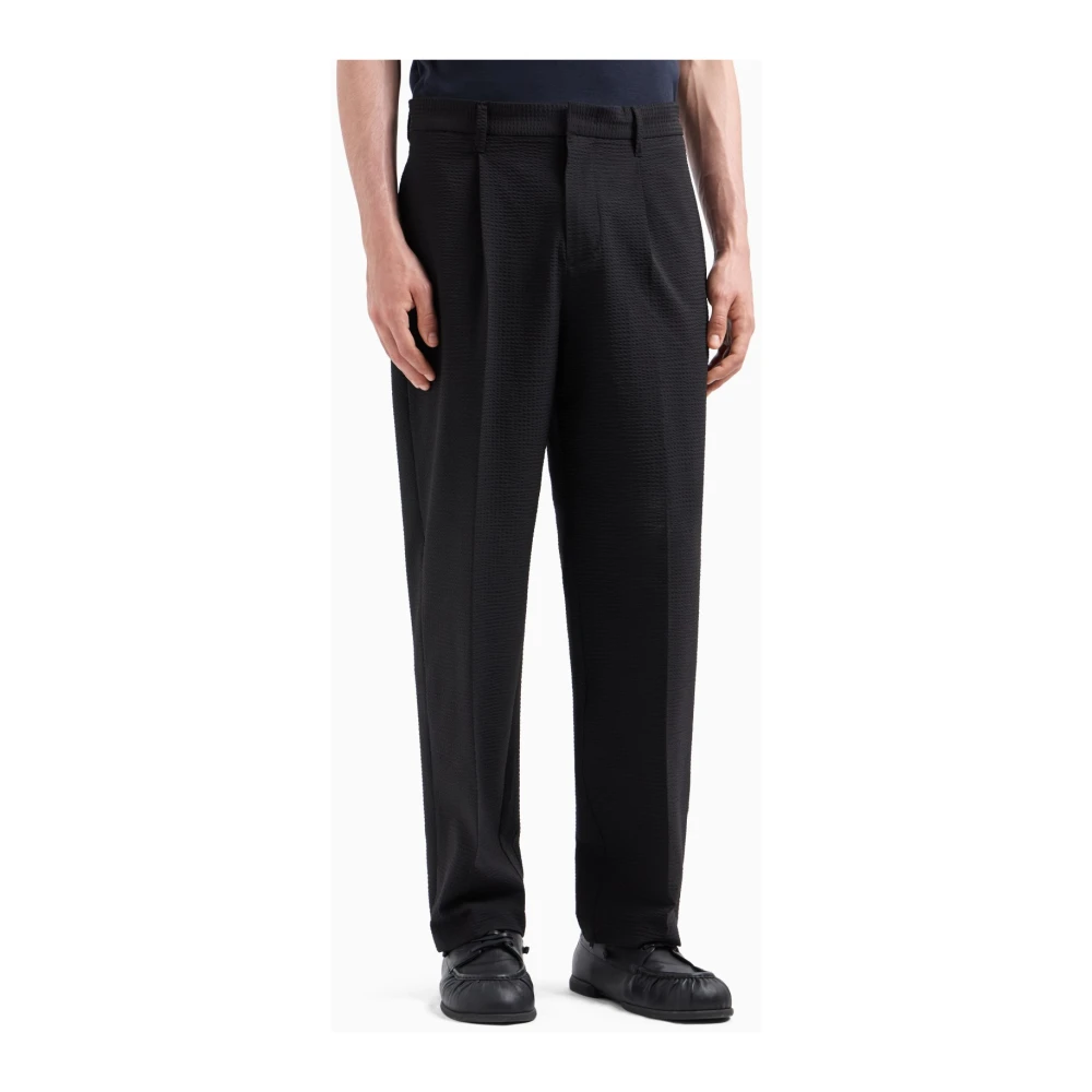 Upgrade je stijl met deze Emporio Armani straight trousers voor heren. Gemaakt van technische seersucker stof met een superlicht gevoel, hebben deze chino broeken plooien in de taille voor een verfijnde uitstraling. De unieke textuur voegt een subtiel gekreukt effect toe aan het gehele ontwerp.