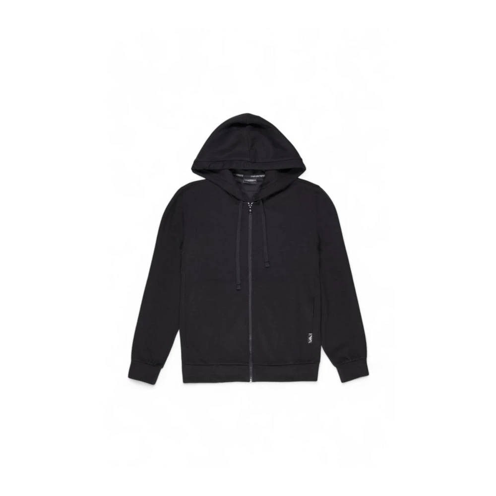 Upgrade je stijl met deze zwarte polyester sweater van Emporio Armani. Onderdeel van de herfst/winter collectie, deze zip-through sweatshirt is perfect voor mannen. Gemaakt van een mix van 50% polyester, 40% katoen en 10% elastane/lycra. Maat op label: It 52 | XL