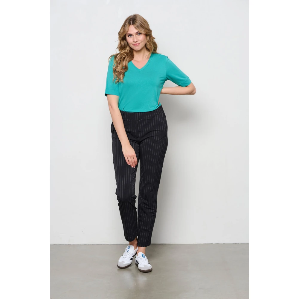 Upgrade je stijl met deze slim-fit broek van Co Woman. Gemaakt van een pin-stripe travel-kwaliteit stof, heeft deze broek een gladde elastische tailleband, steekzakken aan de voorkant, opgestikte zakken aan de achterkant en een taps toelopende broekspijp. Combineer ze met de Priya gilet voor een chique look. Materiaal: 86% Polyamide, 13% Elastaan, 1% Polyester. Wasvoorschrift: Machinewas koud, fijnwas. Niet in de droger.