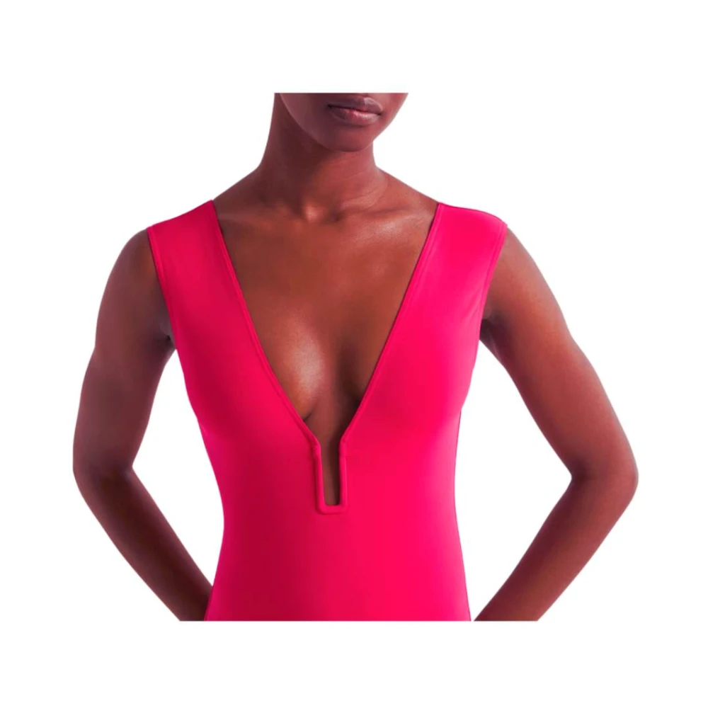 De Eres Grenadine badpak heeft brede bandjes en een diepe V-hals versierd met een platte U-vormige metalen schakel voor een verfijnde uitstraling. Deze vrouwelijke en moderne badpak kan gedragen worden op het strand of in de stad als body. Combineer het met de lange Ankara jurk voor een stijlvolle look.