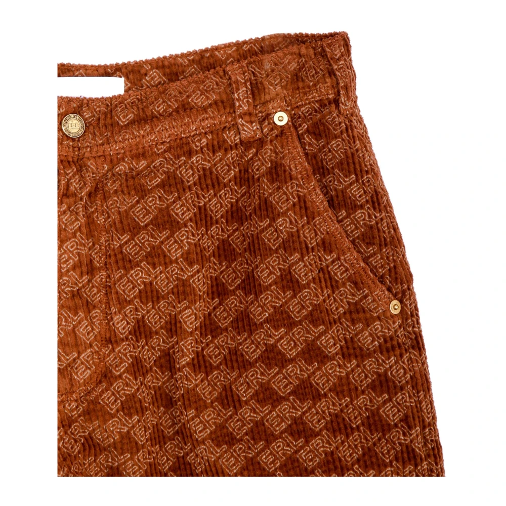 Upgrade je casual garderobe met deze ERL straight broek. Gemaakt van zacht breed ribfluweel, hebben deze broeken een normale taille en iets verlaagd kruis voor een comfortabele pasvorm. De relaxte dijbreedte en rechte beenpasvorm voegen een relaxte uitstraling toe aan je look. Afgewerkt met een rits- en knoopsluiting, schuine zijzakken, een achterzak en een logo print overal, zijn deze broeken gemaakt in Itali voor een vleugje luxe.